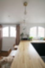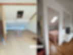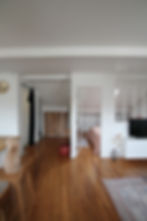 LES TRAVAUX Rafraîchissement des murs et plafonds, restauration de l'ancien parquet, conception d'une nouvelle cuisine, relooking de la salle de bain, dépose de la cloison entre la cuisine et le salon, création d'une cloison verrière entre la chambre et le salon, créations d'espaces de rangements sous pentes, création d'un meuble TV, positionnement des points lumineux.